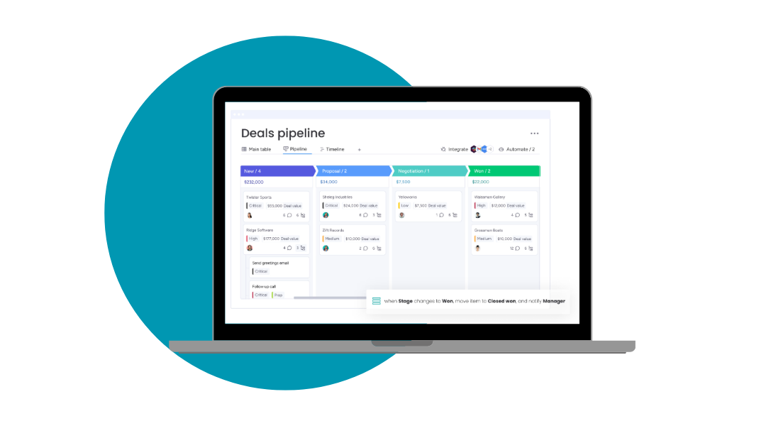 Monitor stock levels, automate reordering, and prevent supply chain disruptions. monday CRM provides real-time inventory visibility, reducing the risk of overstocking or stockouts.